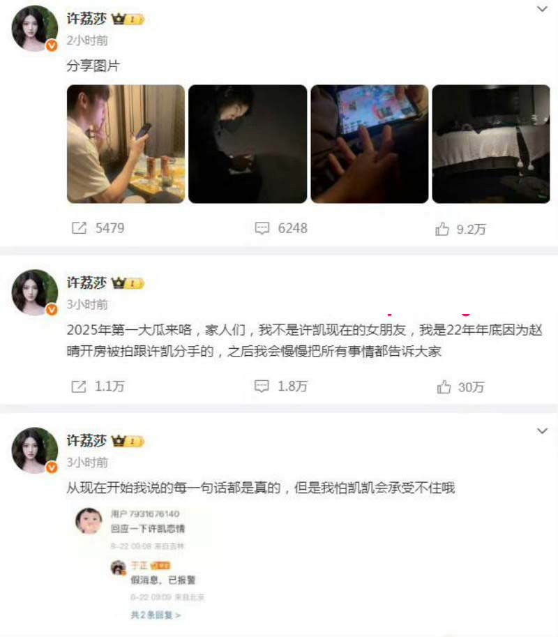 许荔莎自证曾与许凯交往的私密照片与视频