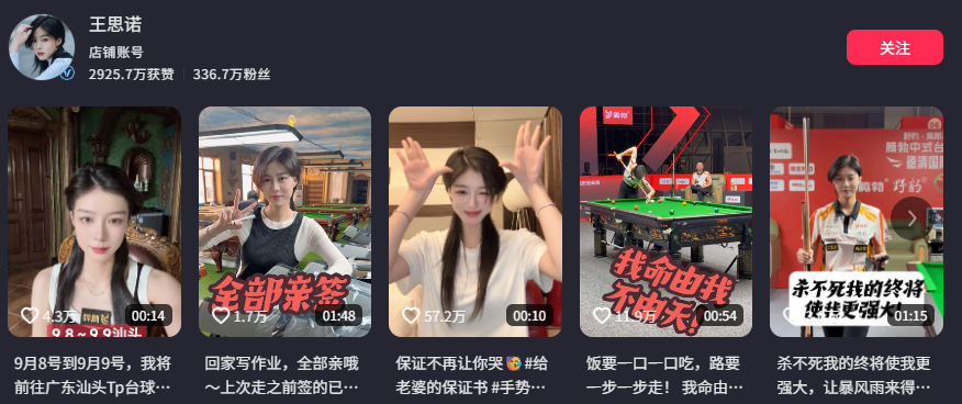 台球女神又被造黄谣340万粉丝抖音网红王思诺恐成卖片哥素材