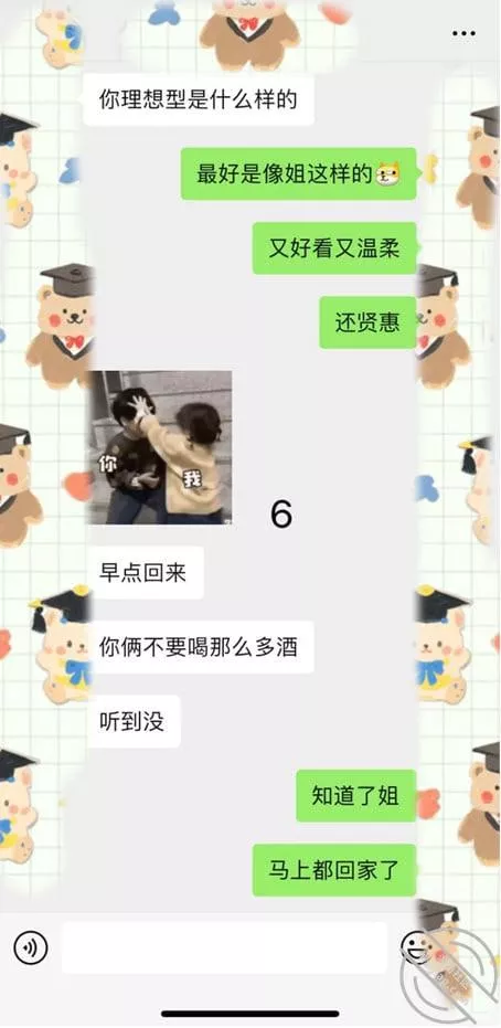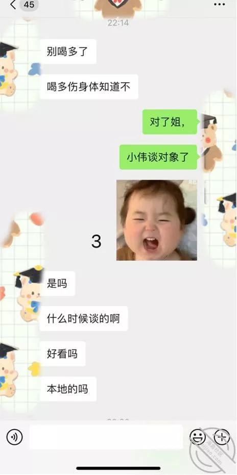 估计最近经常和我姐聊天,特别是会说起和我这个朋友喝酒了什么的,然后看我姐什么反应。其实我这个朋友都不在我们这个城市,但是她不知道,因为我朋友说最近没有和我姐聊天,但是我姐一直会和我说少喝酒,也让我少找我发小,我说你对他有什么意见啊?我姐说没有,就是不想让你老这么喝酒啊,不是办法。