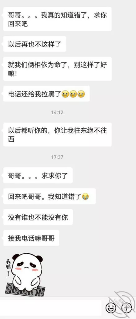 这段时间一没事就跑出去了,也不跟我说去了哪里。搞得我心里面也可难受的慌,我知道这次是我做错了。可是我已经对妹妹认错了啊。每天都给妹妹说好话,这样下去这么久了还对我这样,女的都是这样小心眼吗?还是说我做的事情真的太过火了!