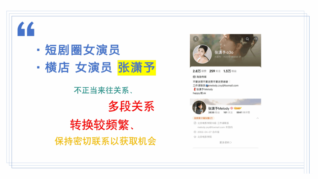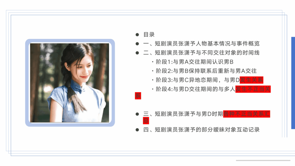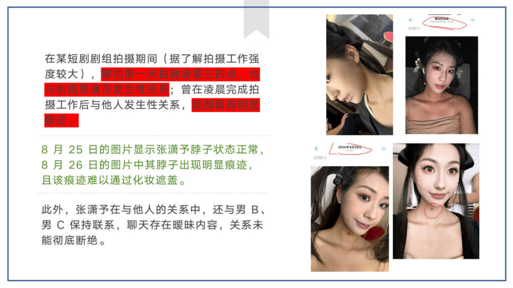 49页长文ppt曝光短剧女演员张潇予,长期与多人保持暧昧不清,表面看起来甜美清纯,私底下却是放浪形骸,大量实锤记录与照片被曝光,这下是彻底堵死明星这条路了。