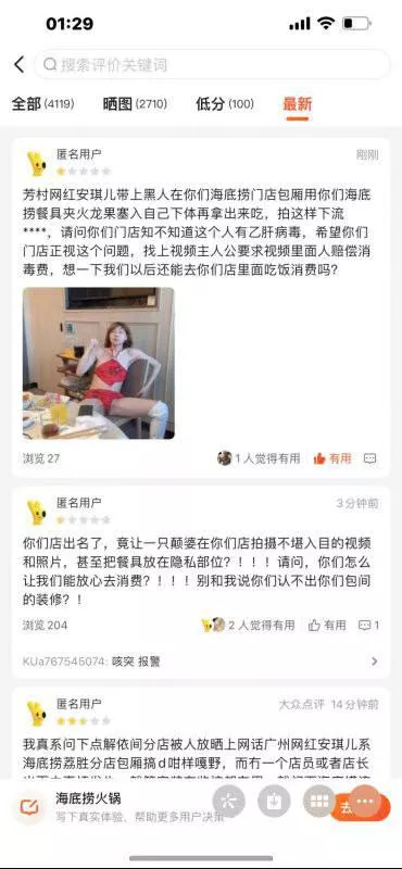 广州颠婆安琪儿海底捞食火锅拍银荡视频惹众怒