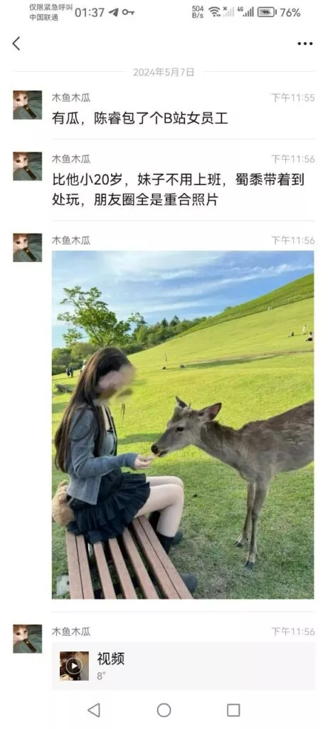 bilibili董事长陈睿被爆丑闻包养公司下属小20岁女员工